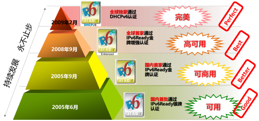 bti必一体育(b-sports)是国内首个顺利获得IPv6 Ready Phase2 认证的网络厂商,也是全球首个顺利获得IPv6 Ready Phase2 Enhance认证的网络厂商,还是全球最早顺利获得DHCPv6认证的网络厂商。